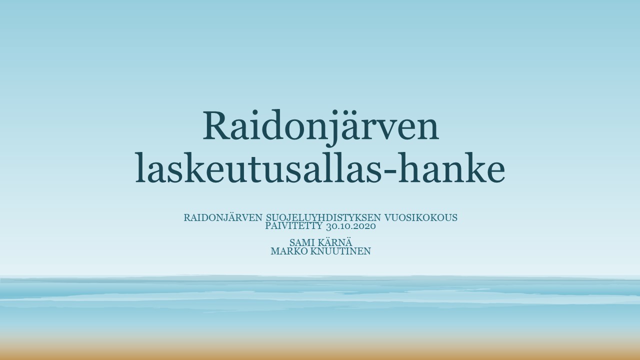 RAIDONJÄRVEN LASKEUTUSALLAS-HANKKEEN ESITYS 2020 VUOSIKOKOUKSESSA